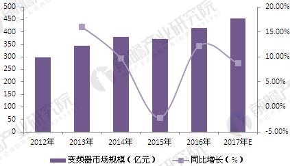 圖表1:2012-2017年(nián)中±¶國(guó)變頻(pín)器(qì)行(xíng)業₹§₩(yè)市(shì)場(chǎng)規模及增長(cháng)(單位:億元♠↓ ,%)