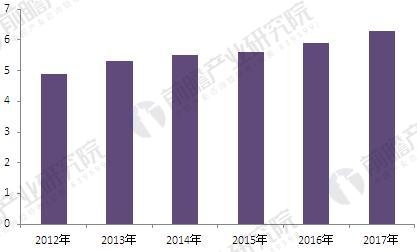 圖表3:2012-2017年(nián)我國(guó)全社會(huìφ¥γ&)用(yòng)電(diàn)量(單位:萬億千瓦時<"(shí))