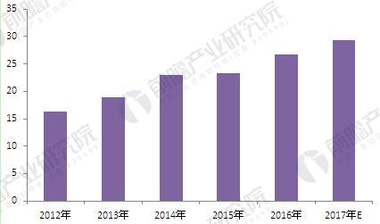 圖表4:2012-2017年(nián)電(diàn)力行(xín'•g)業(yè)高(gāo)壓變頻(pín)器(qì)市(sσ¶hì)場(chǎng)需求(單位:億元)